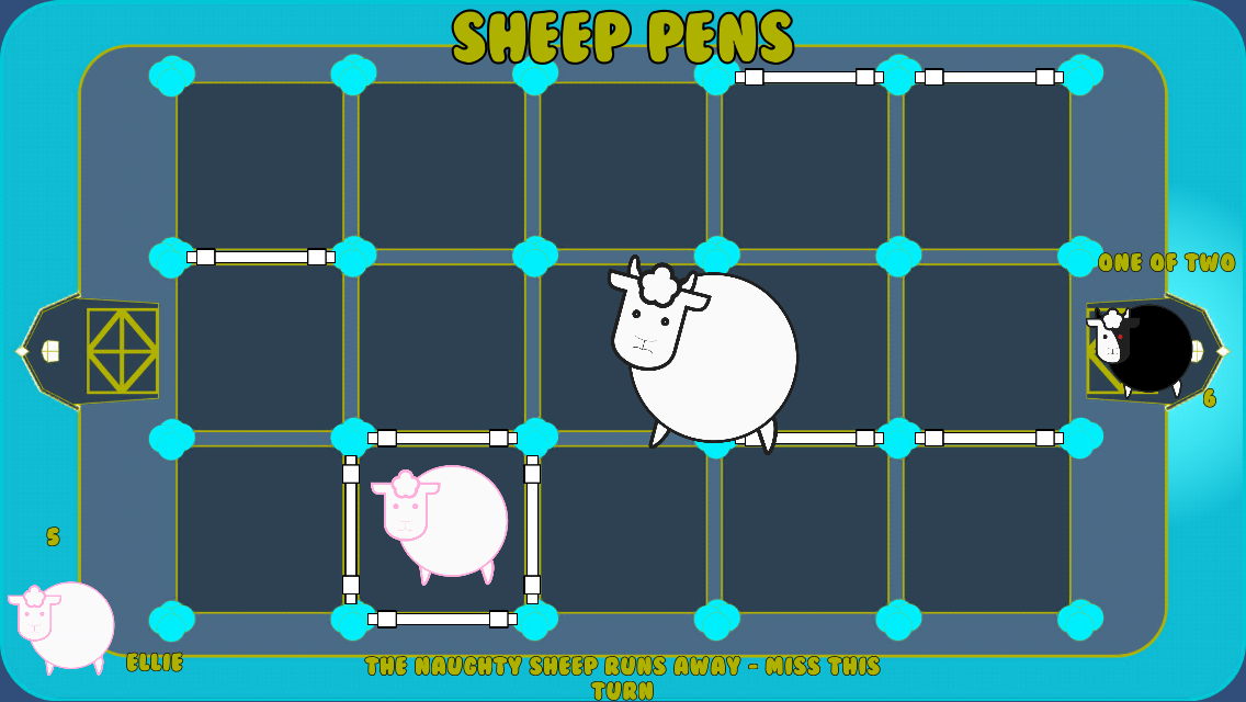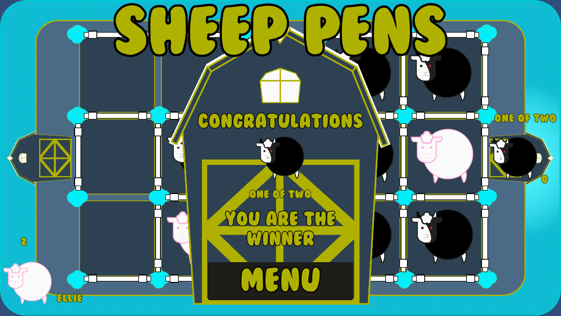 The winner is the first player to pen all of their sheep.