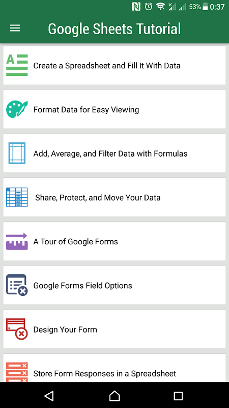 Sheets Tutorial is an application help you Learn Google Sheets easier and more efficient.The familiar Excel spreadsheet app lets you create, view, edit and share your files with others quickly and easily. It also lets you view and edit workbooks attached to email messages. Work in accounting, auditing, finance or any other field, with anyone, anywhere with confidence. With Excel, your Office moves with you being able to implement the most complex formulas and with amazing features.