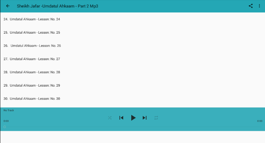 Wannan app yana dauke da Sharhin Littafin Umdatul Ahkaam Part Two 2 (1 daga cikin apps 3) na Sheikh Ja'afar Mahmoud Adam, shine muka ga ya dace muyi application wanda mutane zasu su saurara a saukake