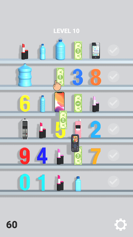 This game sorts objects to right place in line.