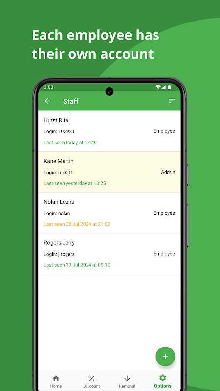 Users are granted their personal accounts linked to the store they are registered in. This allows to group users according to stores and chains. The admin is enabled to manage staff accounts adding news ones or deleting created ones when necessary.