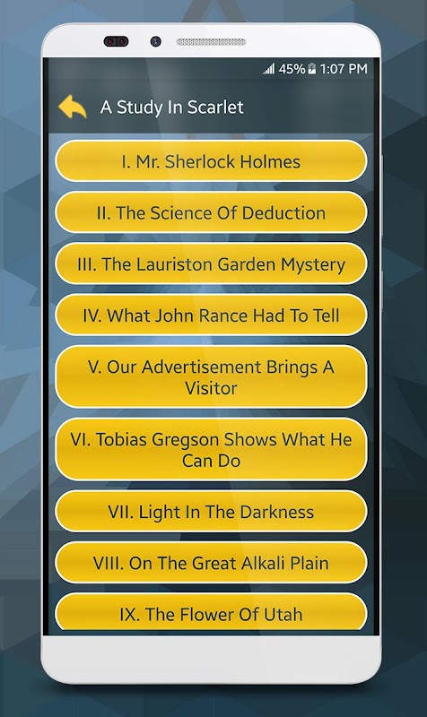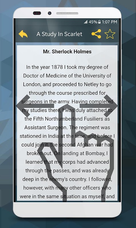 If you are a fan of Sherlock Holmes, you can find best detective stories of all time from Sir Arthur Conan Doyle in this app. This application is collection of Sir Arthur Conan Doyle work of Sherlock Holmes in English that is easy to use with an attractive interface design.