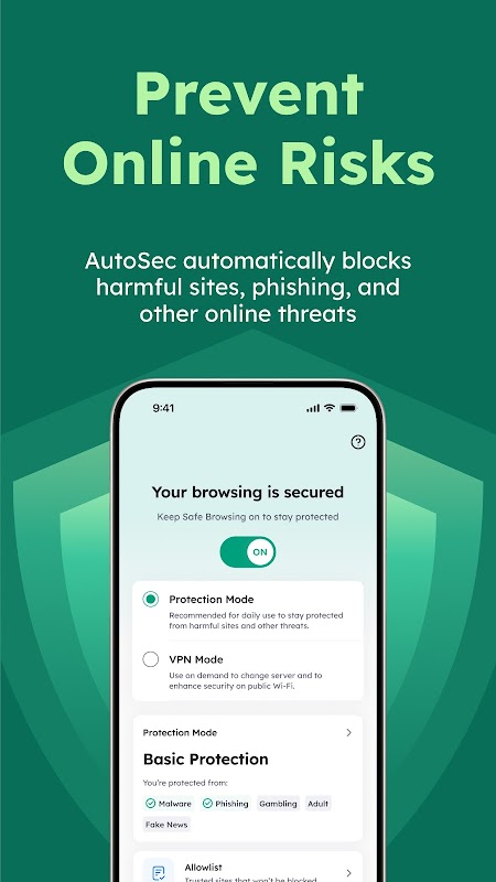 Stay safe online with automatic protection against malicious, fake, or dangerous websites. AutoSec prevents harmful sites from loading, protecting you quietly in the background.