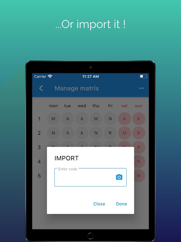 The definition of the matrix is very intuitive: just choose the number of weeks on which the shift rotates and enter,