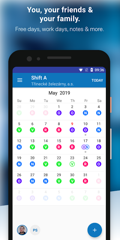 Always have your shifts free time clearly and at hand. Create a profile, select a company, select a shift and you're done. With a clear monthly view, you won't get lost. You can adjust your days and shifts at any time.