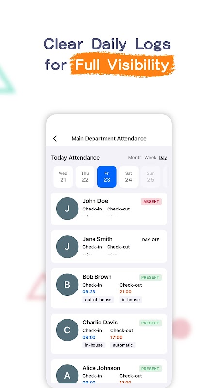Admins gain instant visibility into attendance statistics, late check-ins, absences, and overall workforce activity—exporting reports is as easy as a few clicks.