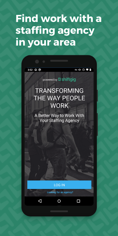 IMPORTANT INFORMATION: If you are a worker interested in using the Shiftgig app you MUST be an employee of a staffing agency that is Powered by Shiftgig. To see some of the agencies that are using the Shiftgig app, visit www.shiftgig.com/apply. You will NOT be able to log in without being employed by one of our staffing agency partners. You CAN NOT apply directly from the app.