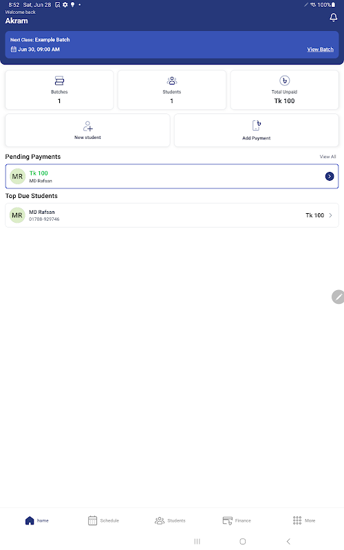 If you manage one or more batches with many students and waste a lot of time tracking fees, sending reminders, and handling payments, this app is for you. Simply add your students and let the app handle fee collection and accounting automatically. As a teacher, you can now focus more on what you do best—teaching!