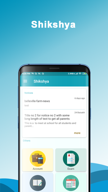 Shikshya App is : - Account info - Exam Result - Exam Routine - Notices with image and pdfs - Academic Calendar with Events and Holidays - Live Chat - Home Work -Online Class -Online Exam -Parents can now pay school fees via Khalti, IPS Connect, Mobile Banking and many more features combined on a single Package