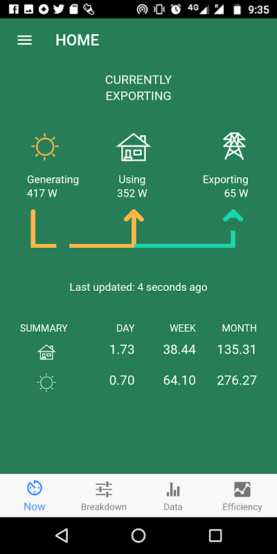 Monitoring of solar PV installation and electricity consumption.