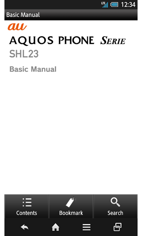 This application is a manual for “AQUOS PHONE SERIE SHL23” which you can view even when you are out etc. If a language used on the product is “English”, this application switches to Basic Manual, a simplified version.