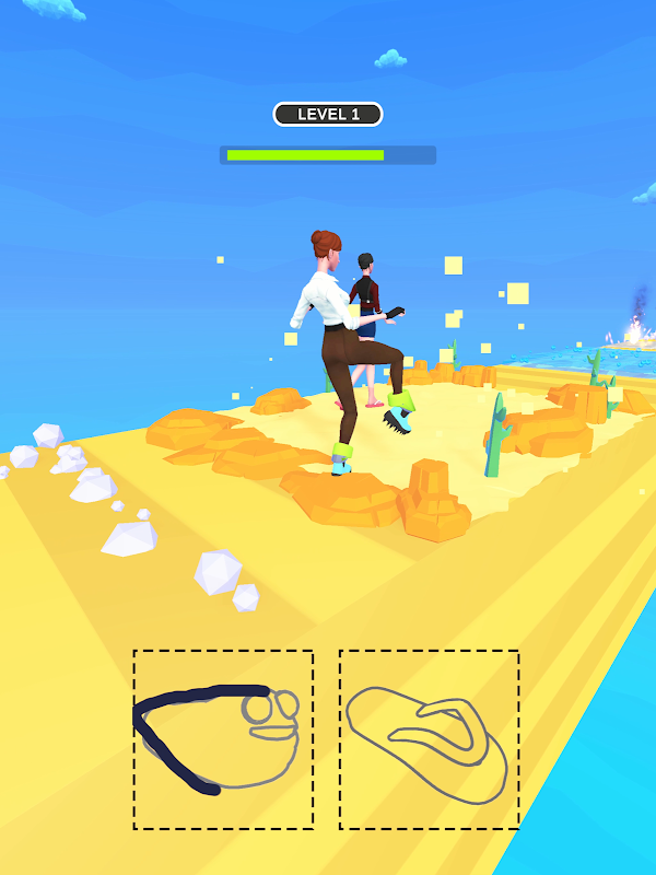 Draw on the correct shoe to walk through the environments. Draw quickly