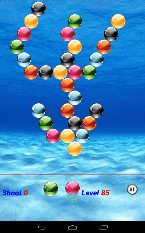 Puzzle: Each level starts with a few bubbles and you should try to clear all with least number of shoot.