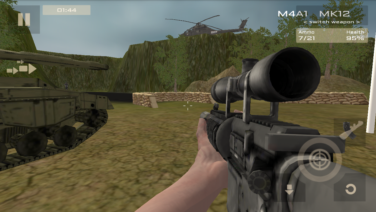 War is everywhere. Take your gun, shoot enemies in different parts of the world. You will have shooting battles in the fields, mountains, deserts, cities in winter and summer. Shooting simulator includes different guns: assault rifles, machine guns, shotguns, snipers also big variety of missions. Shoot all enemies and bring the victory.