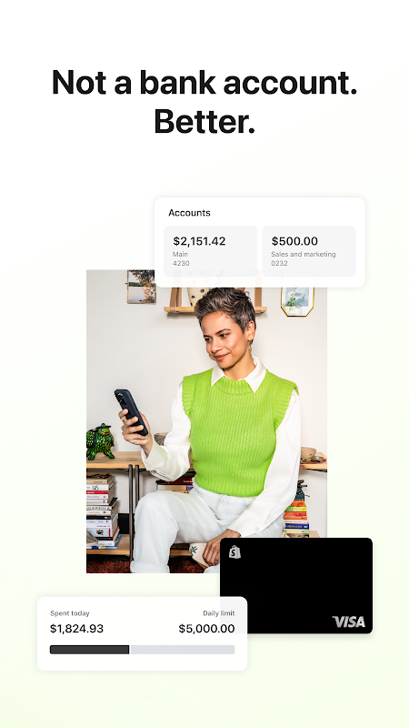 • Get paid out from your Shopify sales up to 7 days faster than with a traditional bank.