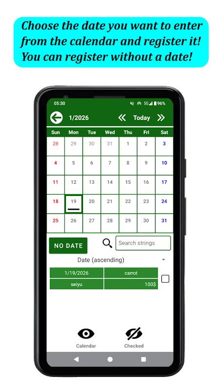 *If you want to register without specifying the date, tap the "No date" button on the lower left of the calendar.