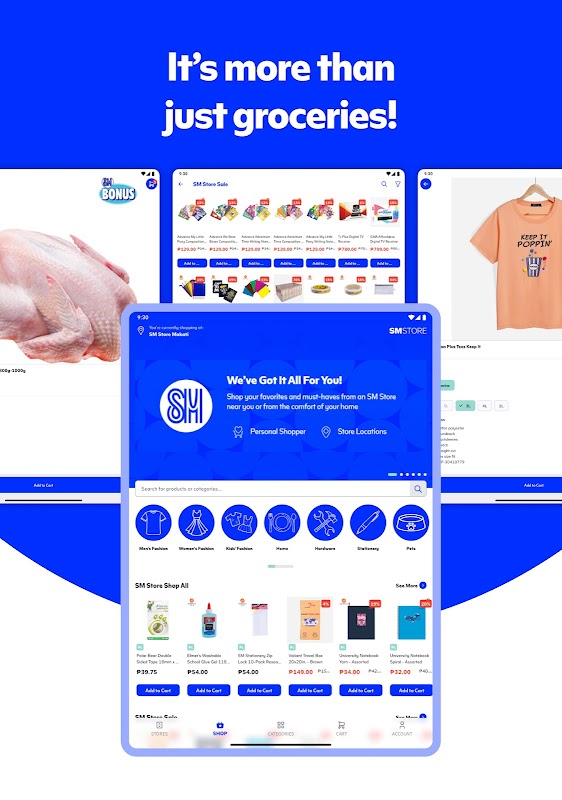 Convenient grocery shopping is now just a click away! SM Markets has an extensive selection of fresh ingredients, pantry staples, snacks, international grocery items, and affordable SM Bonus essentials. You can even choose to pick up your orders in-store.