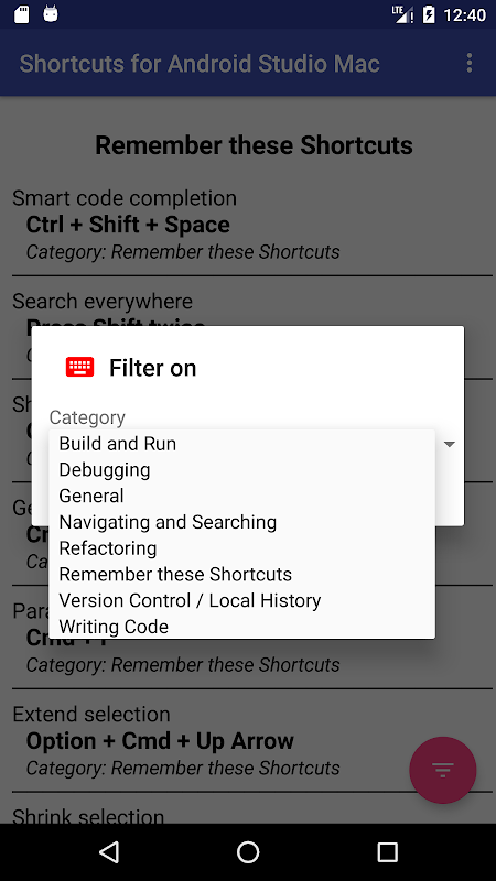 Shortcuts for Android Studio Mac complete listing of the default keyboard mapping for the Mac development environments.