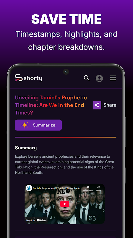 Supporting YouTube and Spotify integrations, Shorty, transforms long videos and podcasts into quick, digestible summaries.