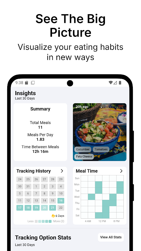 - View your stats for particular food and see how your habits change based on the food that you are eating.