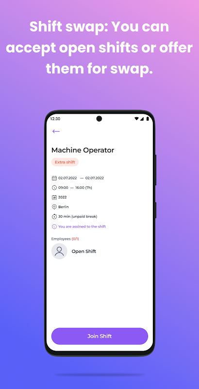 See your current shift plan and receive instant notification in case anything changes. You can apply for newly available shifts and ask to swap shifts whenever your plans change.