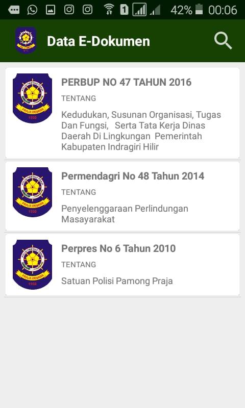 Merupakan aplikasi yang dikembangkan untuk tujuan memudahkan seluruh pengguna untuk melakukan pelaporan pelanggaran. Serta dilengkapi dengan pustaka digital yang berisikan Dokumen-dokumen Peraturan mulai dari Undang-undang hingga Perbup mengenai Regulasi Satuan Polisi Pamong Praja, khususnya pada Satuan Polisi Pamong Praja Kabupaten Indragiri Hilir.