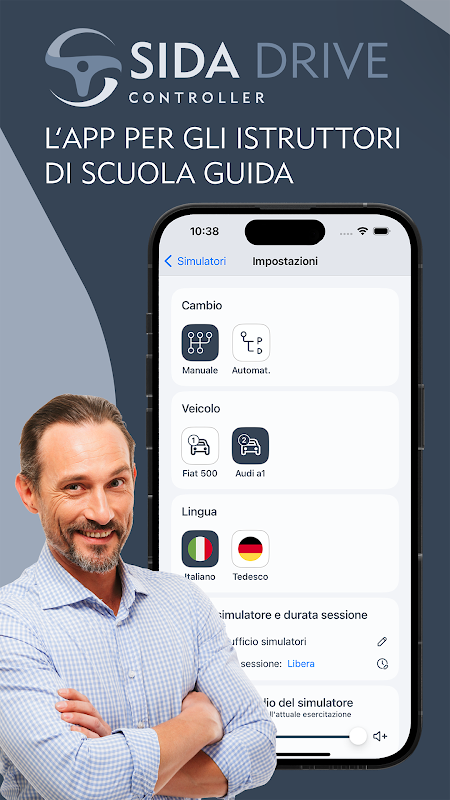 SIDA DRIVE Controller is the app that allows driving school instructors to manage and personalize candidates' lessons on the SIDA DRIVE simulators.