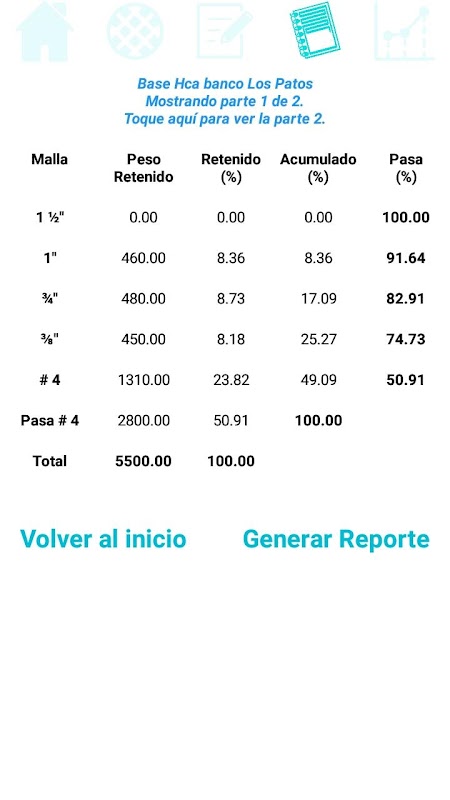 This app lets you calculate the percentages retained, accumulated and those that passes each sieve.