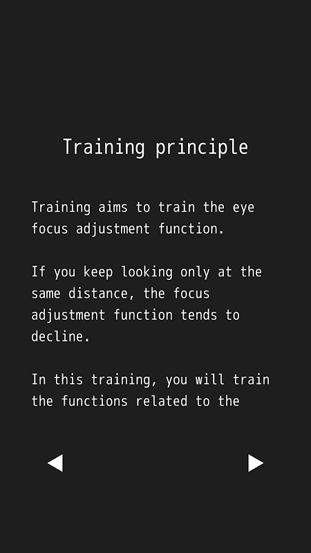 Sight Recovery Training is a simple training app. The purpose is to train the eye focus adjustment function that is tired in daily life.