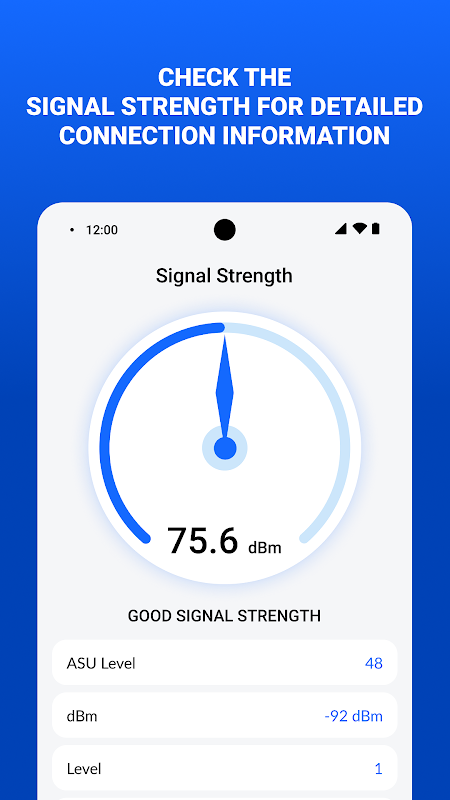 • Visualize your Wi-Fi signal strength with a speedometer-style gauge, offering real-time readings.
