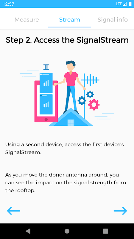 * SignalStream allows you to stream information about your 4G LTE cell signal from your cell phone to another device, so you can test and optimize your outdoor antenna location & direction.