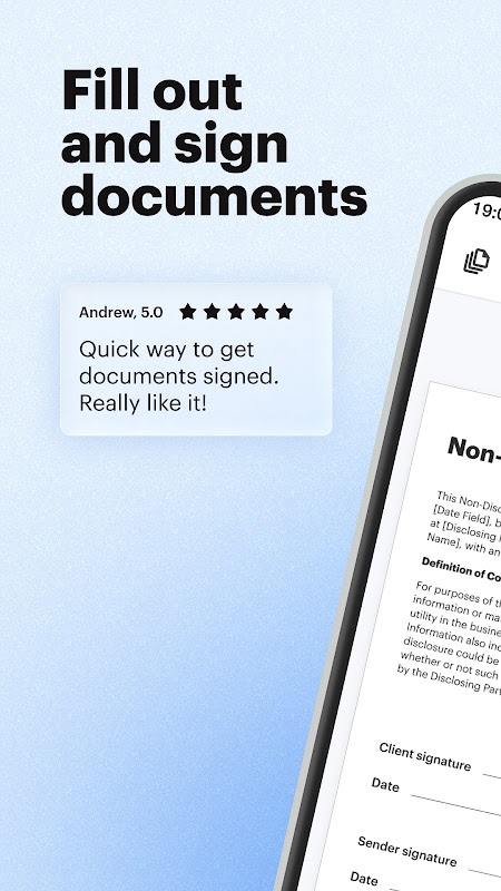 Speed up document workflows, delight customers, and enhance security anytime and anywhere. Sign documents and write on pdf on android device, collect e-signatures in seconds, and track document status in real time. Try it for free with the first seven days..