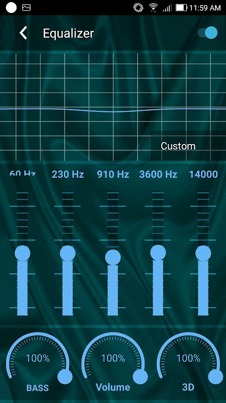 - Equalizer. Set equalizer for your playing audios. You can use presets or change sets manually. Set volume, bass, 3D effect (reverb).