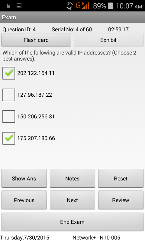 Network+ Exam Simulator provides 60 practice questions with detailed flash cards