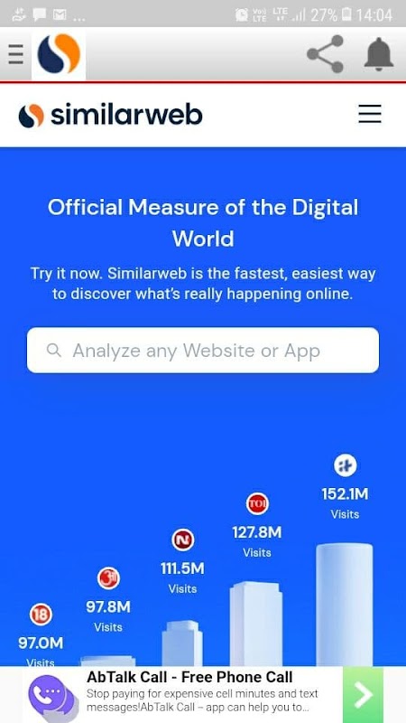 Similarweb is a digital intelligence provider for enterprise and small to mid-sized business customers. The platform provides web analytics services and offers its users information on their clients' & competitors' web traffic.