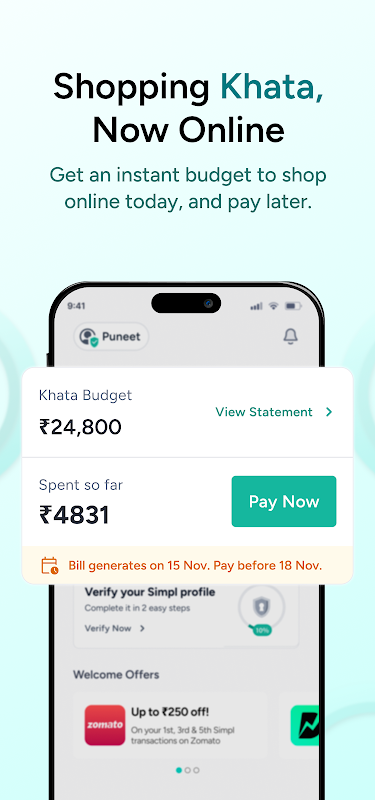 - ✅ Track, Manage, and Budget: Stay in control of your spending. Simpl shows all your payment history, limits, and due dates in one view — across shopping and bill payments.
