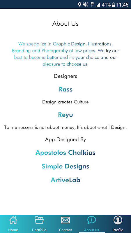 We are a designing team that started on 16 April 2015 , this app includes our job from what we have made so far. Our application can also help you find ideas for your own designs .