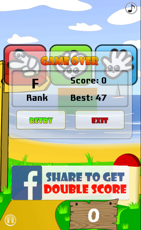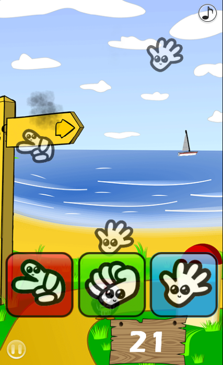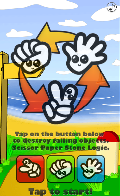 This is a simple game, tap on scissors or paper or stone button to destroy falling scissors or paper or stone. Scissors kill Paper kill Stone kill Scissors....