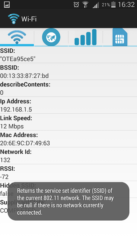 The Simple Network Info provides the basic information of your: