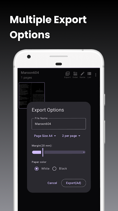 Simple PDF Maker is a easy to use document scanning application which has features like auto detecting bounds, filter in dark mode, multiple export options.