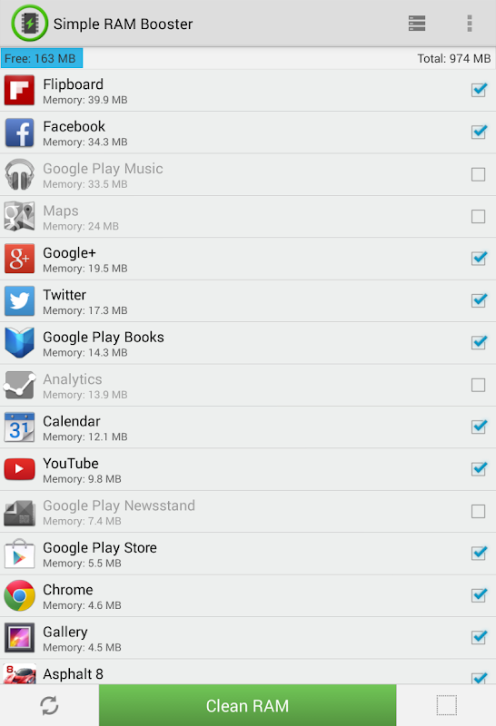Simple RAM Booster also features the Instant Boost Widget, using which you can give the system that extra jolt of performance. Just tap on the widget and all open tasks will be killed, freeing occupied memory.