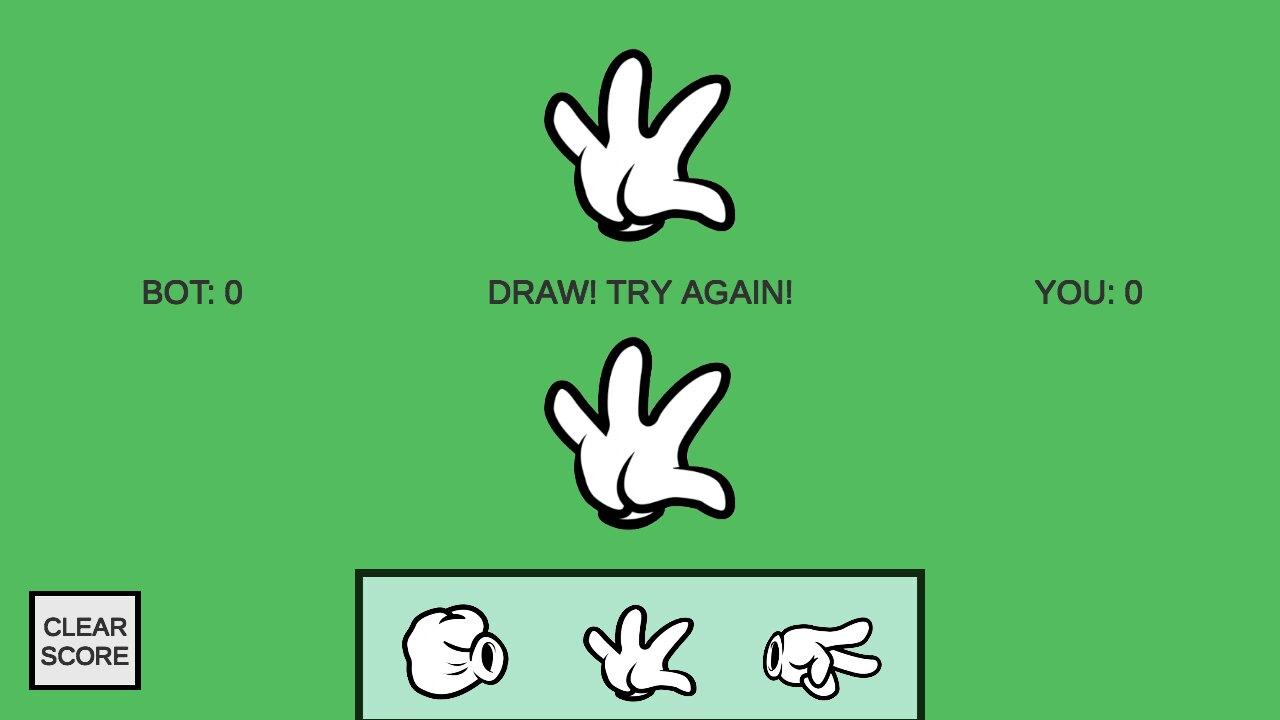 Rock paper scissors is a hand game usually played between two people, in which each player simultaneously forms one of three shapes with an outstretched hand.