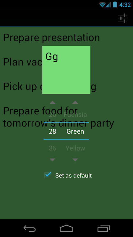 A lightweight, no-nonsense sticky note widget! Resizable, scrollable, and enabled for both your home screen and (on devices running Jelly Bean and KitKat) lock screen. No permissions required! The Plus version allows you to choose background color, background transparency, font size, and share note text to other apps.