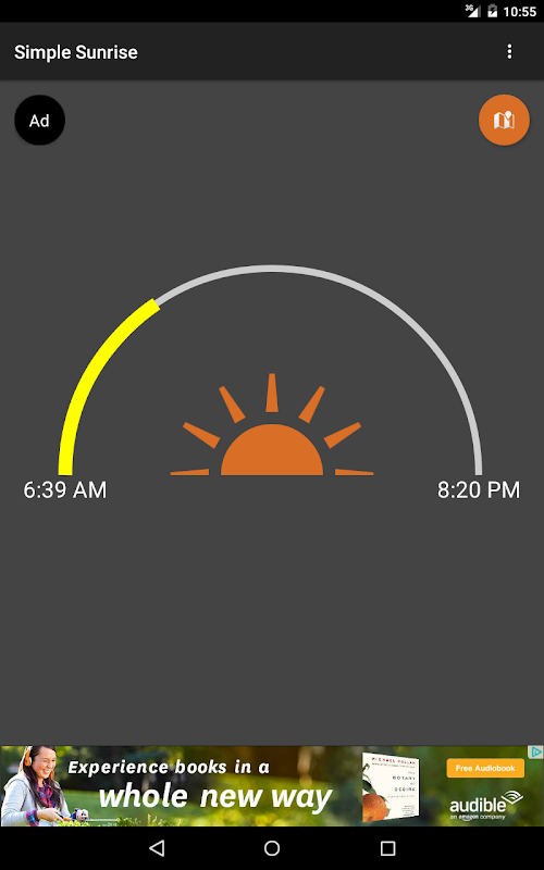 Quick and simple. Check this app to see when the sun will rise and set. Two minimal styles available, display the time as 12 or 24 hours, set your location once using the built in map and you never need to set it again. No need for power hungry GPS.