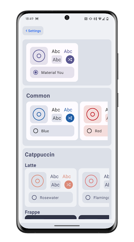 You can change it's theme either by having it pick the colors by your device or by selecting one of the pre done themes.