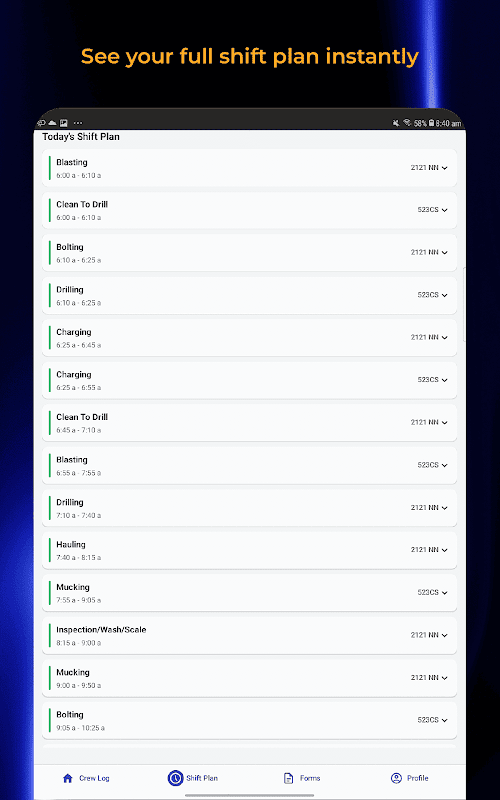 The app focuses on what matters on shift. Clear plans. Simple task tracking. Real time visibility. No clutter. No unnecessary complexity.