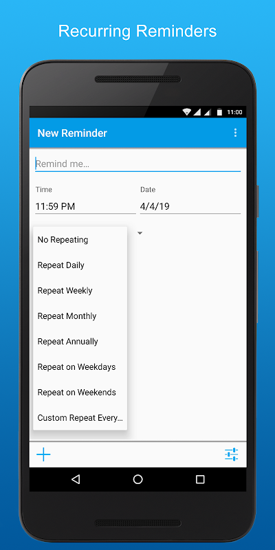 - Recurring reminders. Choose between daily, weekly, monthly, annually, weekdays(Mon-Fri), weekends(Sat-Sun),