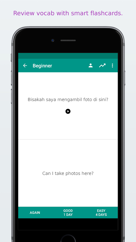 ★★★ Learn Indonesian language when visiting Indonesia ★★★Simply Learn Indonesian Language App is a FREE language app that will assist you to speak Indonesian quickly and effectively.All Indonesian phrases and words are presented to you in both phonetic and original Indonesian writing. They are recorded by a native speaker from Indonesia.Save your favorite phrases and words to review them without fuss.Study your vocabulary with flashcards using the spaced repetition technique.Test your knowledge with fun Indonesian language quiz and review your score.★★★ Survive when travelling in Indonesia ★★★ Use the Indonesian phrasebook to survive in Indonesia. All important survival phrases are included.For example, let the app speak to the Taxi driver in Indonesia to show them where you want to go.Search all phrases and words to quickly access what you need.★★★ Main Features ★★★✓ 300+ free Indonesian phrases and words