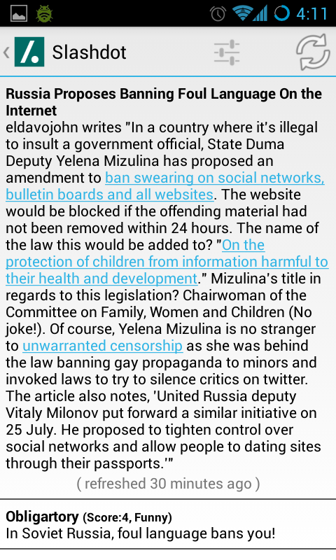 Simply Slashdot provides offline reading of Slashdot.org articles & comments.