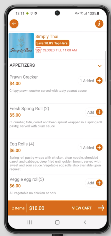 1. Get the Simply Thai Online Order app and conveniently order from anywhere on your Android phone and tablet.